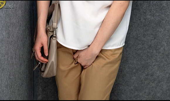 ポリ袋へ緊急回避。メンヘラ娘。股間とバッグの紐を交互に掴んでモジモジ…。袋を股間にあてがい立ちション開始!最小限の被害で済んだ。